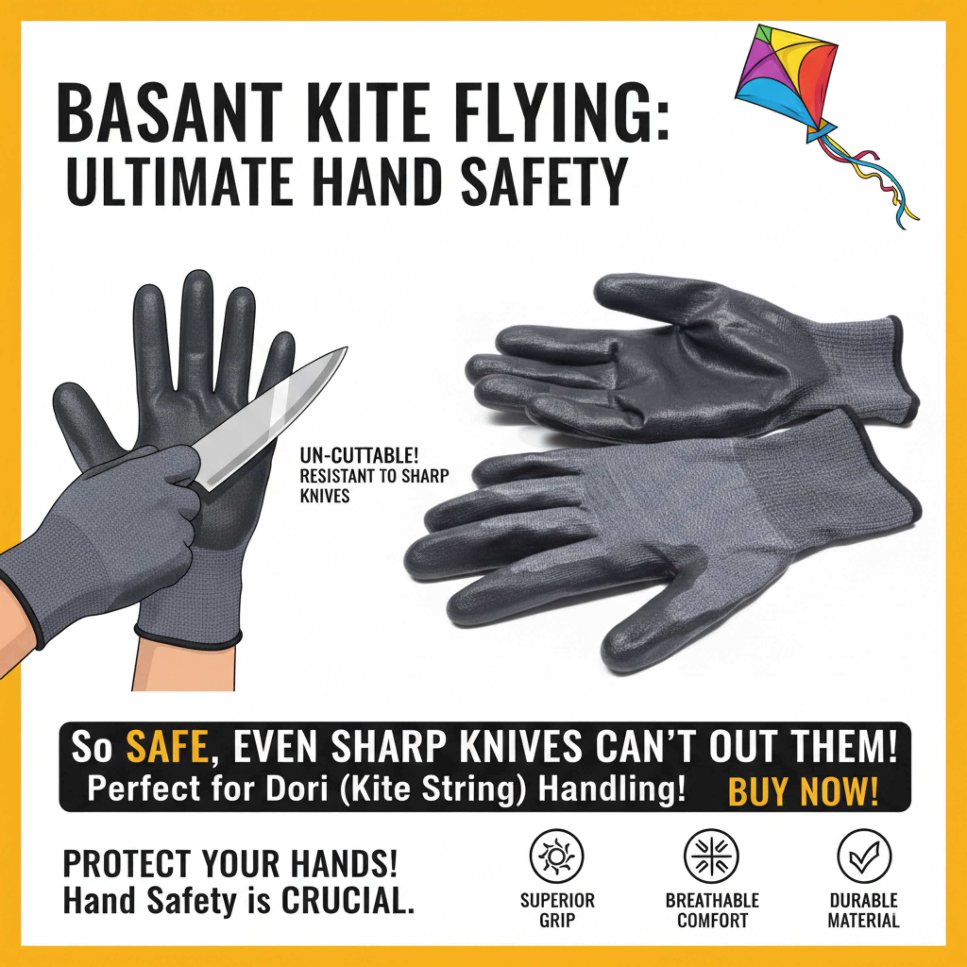 Kite Flying Cut-Resistant Gloves – High Protection